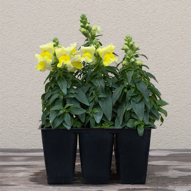 Lightly scented, short flower spikes are a rich lemon yellow accented by pale buttery yellow upper petals. Bushy and compact plants provide continuous color with very little maintenance.