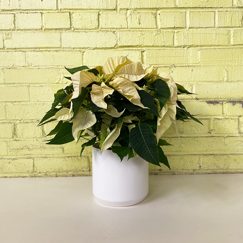 A fascinating holiday plant with colorful bracts that resemble flowers. Relatively easy to care for if you remember to protect from temperatures below 50⁰ - wrap it up when transporting and place away from warm/cold drafts. Allow soil to almost dry out before watering and do not allow it to sit in water. Cooler night temperatures  will help keep the bracts at their most intense color for the longest time. Not poisonous or toxic to humans or pets, though the sap is a skin irritant and should not be ingested; keep out of reach from chewing kittens or puppies. Euphorbia pulcherrima
