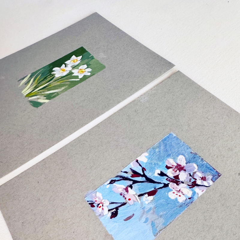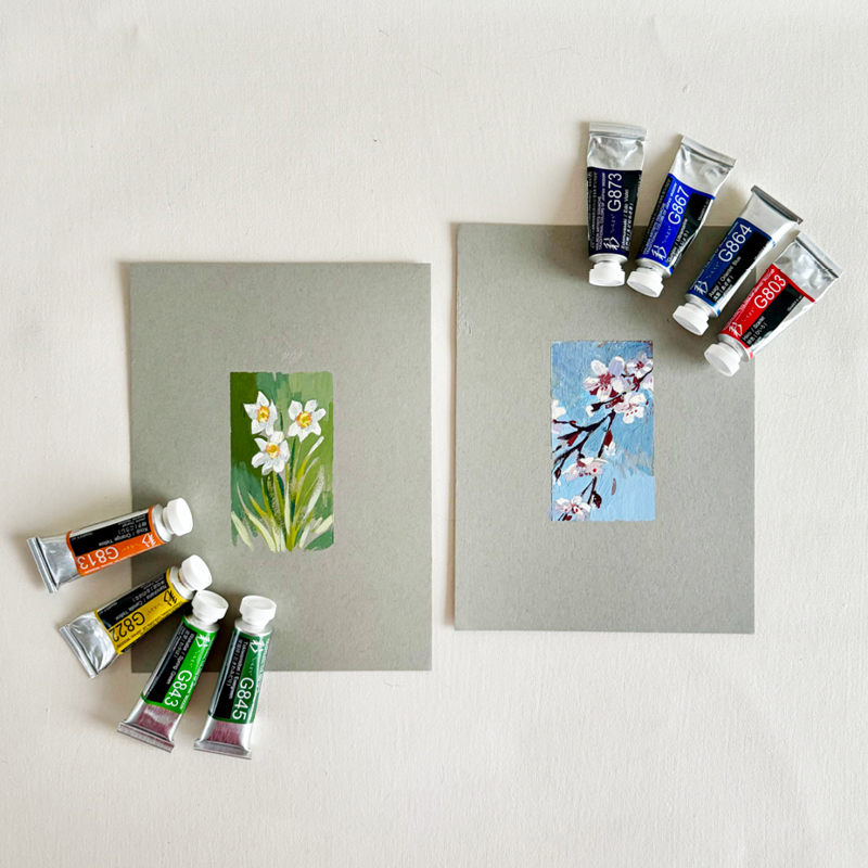 Explore gouache painting with artist Caitlin Allen. In this class you will create two flower portraits while learning brush and mixing techniques. Caitlin facilitates practice exercises to get you comfortable in the medium and explore the unique way gouache appears on gray paper. All supplies are included, and you will leave with your completed paintings on premium watercolor paper. This class is great for artists that are new to painting with gouache.