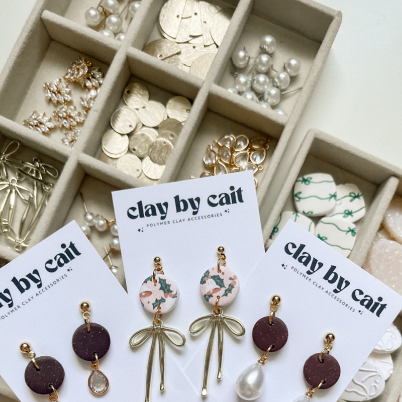 Caitlin Burling of Clay by Cait is continuing her popular build-your-own-clay earring workshop to The Studio. In this workshop you will create two pairs of custom earrings using handmade polymer clay pieces, as well as brass and gem attachments. Caitlin will provide tips to help you create and assemble your unique fall designs. All materials and tools are provided including nickel free and hypoallergenic posts.
